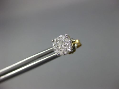 ESTATE .33CT DIAMOND 14KT 2 TONE GOLD ROUND SOLITAIRE HALO CLUSTER STUD EARRINGS