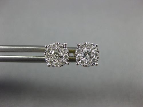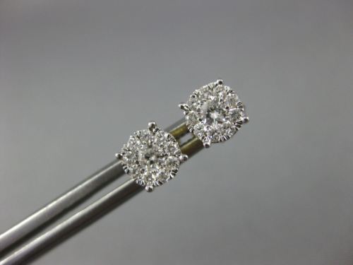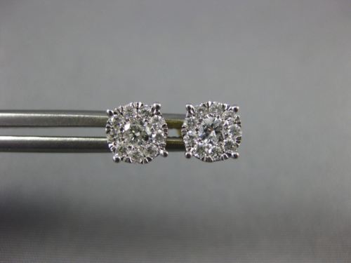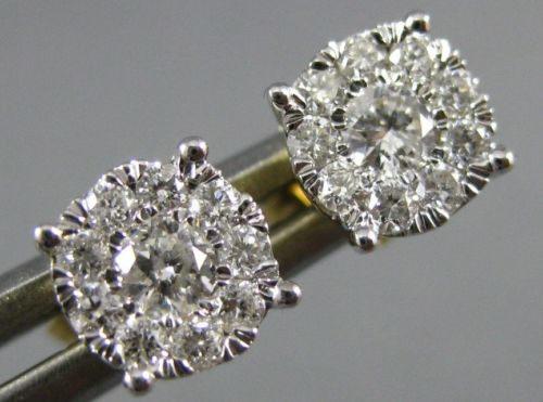 ESTATE 14KT WHITE AND YELLOW GOLD STUD EARRINGS. 3D CLASSIC ROUND SOLITAIRE HALO CLUSTER DESIGN. DIAMONDS ARE F/G COLOR, VSSI CLARITY 1.0 CARATS. MEASURES 8MM WIDE. WRITTEN APPRAISAL AVAILABLE. COMES IN A PRESENTABLE GIFT BOX.