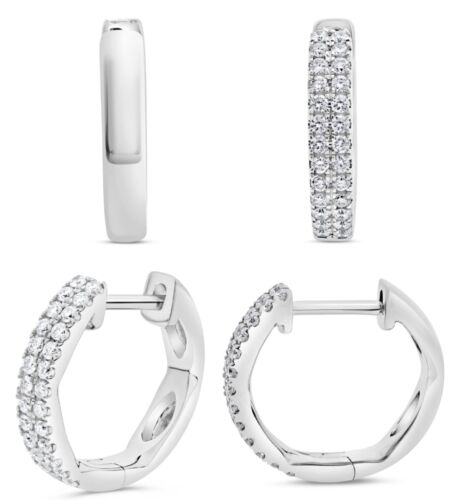 ESTATE .34CT DIAMOND 14KT WHITE GOLD 3D ROUND 2 ROW HEXAGON FUN HANGING EARRINGS