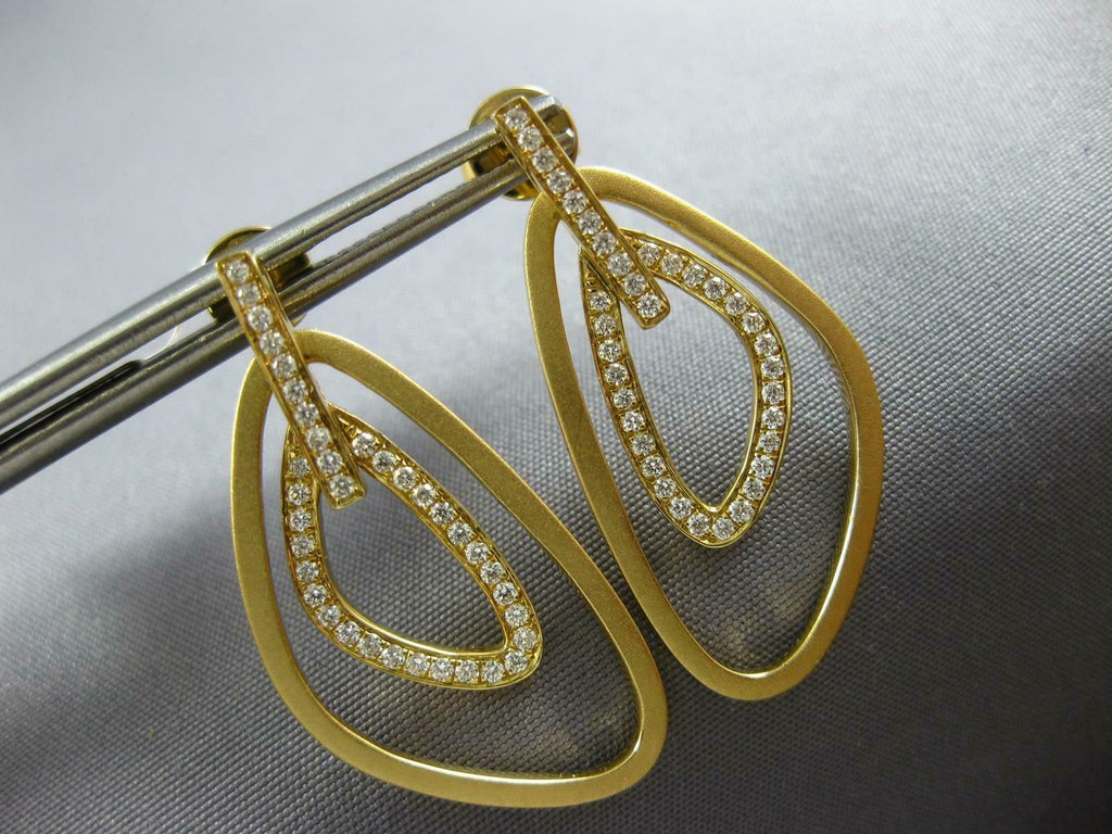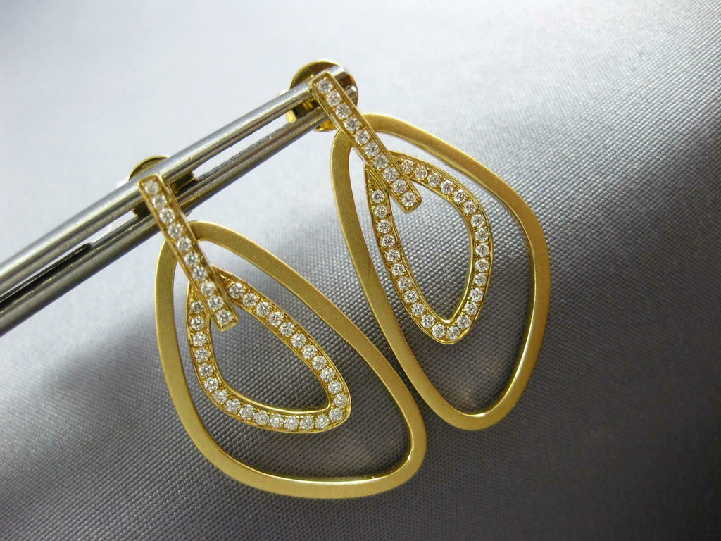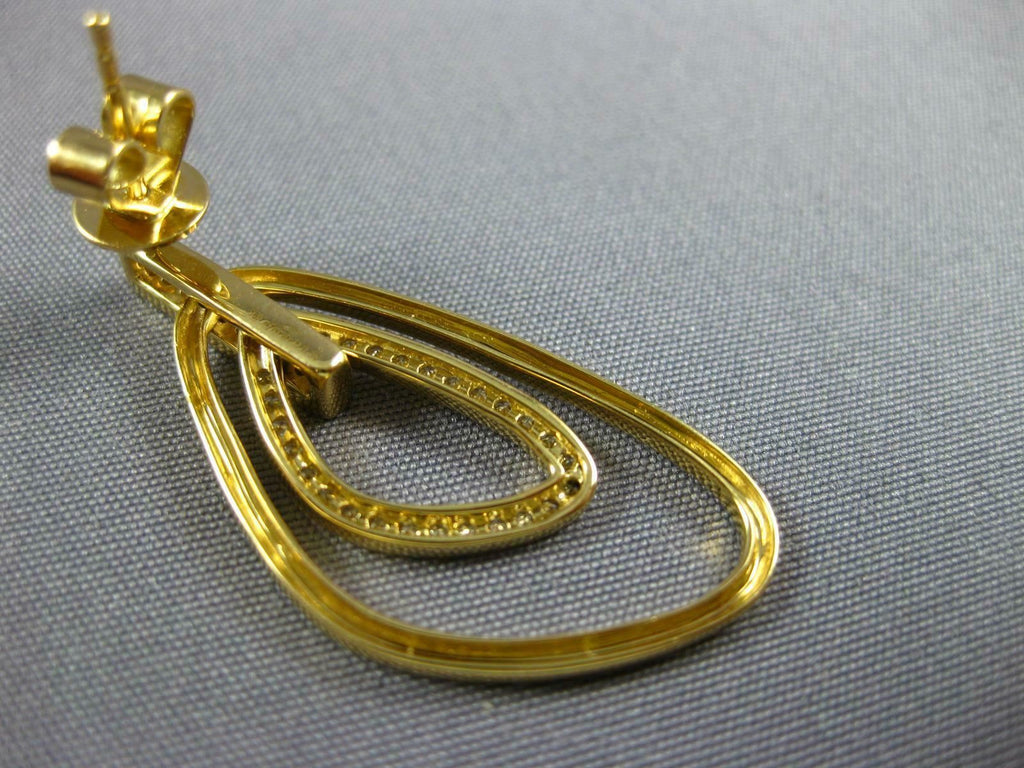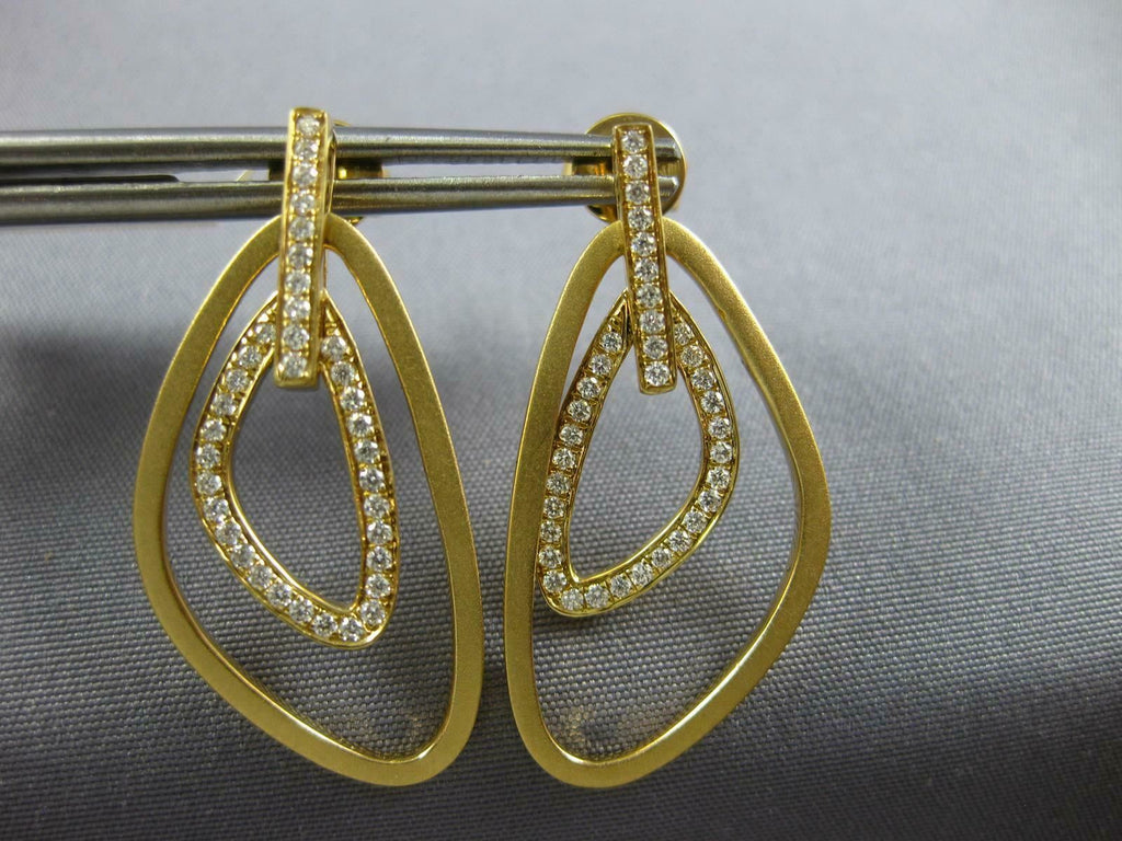ESTATE18KT YELLOWGOLD HANGING FUNEARRINGS. 3D MATTE AND SHINY TRIANGULARDESIGN. DIAMONDS ARE F/G COLOR, VSSI CLARITY .34CARATS.MEASURES 30mm X 15mm. WRITTEN APPRAISAL AVAILABLE. COMES IN A PRESENTABLE GIFT BOX.