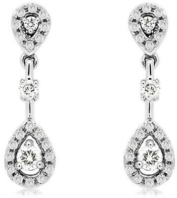 ESTATE .35CT DIAMOND 14KT WHITE GOLD 3D CLASSIC TEAR DROP HANGING EARRINGS