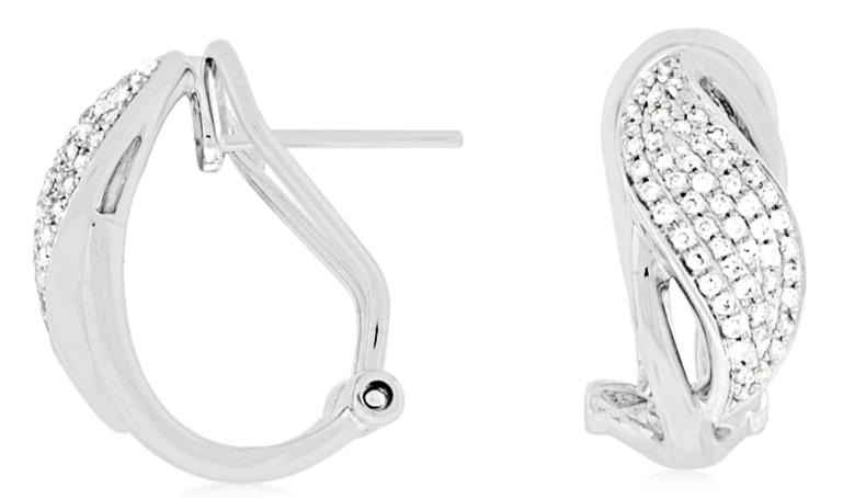 ESTATE 14KT WHITE GOLD HANGINGCLIP ONEARRINGS. 3D MULTI ROW LEAF DESIGN. DIAMONDS ARE F/G COLOR, VSSI CLARITY 0.35 CARATS. WRITTEN APPRAISAL AVAILABLE. COMES IN A PRESENTABLE GIFT BOX.