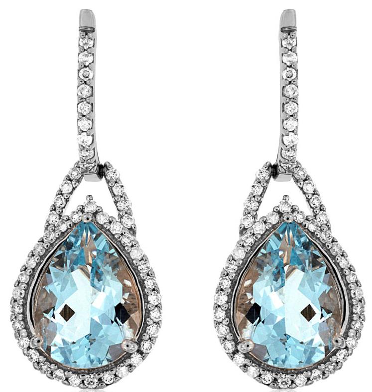 ESTATE 3.5CT DIAMOND & AAA AQUAMARINE 14K WHITE GOLD PEAR SHAPE HANGING EARRINGS