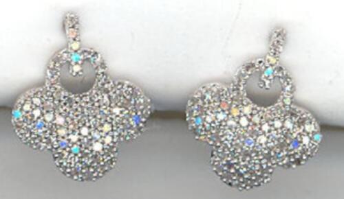 ESTATE .36CT DIAMOND 14KT WHITE GOLD 3D PAVE FLOWER FUN HANGING EARRINGS