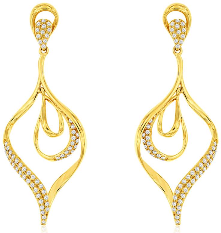 ESTATE 14KT YELLOW GOLD HANGING EARRINGS. 3D MULTI LEAF TEAR DROP DESIGN. DIAMONDS ARE F/G COLOR, VSSI CLARITY .36 CARATS. WRITTEN APPRAISAL AVAILABLE. COMES IN A PRESENTABLE GIFT BOX.