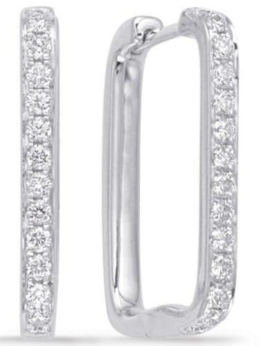 ESTATE 14KT WHITE GOLD HUGGIE HOOP HANGING EARRINGS. 3D CLASSIC SQUARE DESIGN. ROUND DIAMONDS ARE F/G COLOR, VSSI CLARITY .37 CARATS. MEASURES 13mm WIDE. WRITTEN APPRAISAL AVAILABLE. COMES IN A PRESENTABLE GIFT BOX.