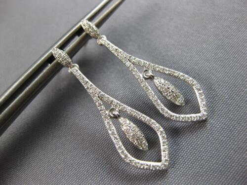 ESTATE .38CT DIAMOND 14KT WHITE GOLD ROUND PAVE OPEN TEAR DROP HANGING EARRINGS