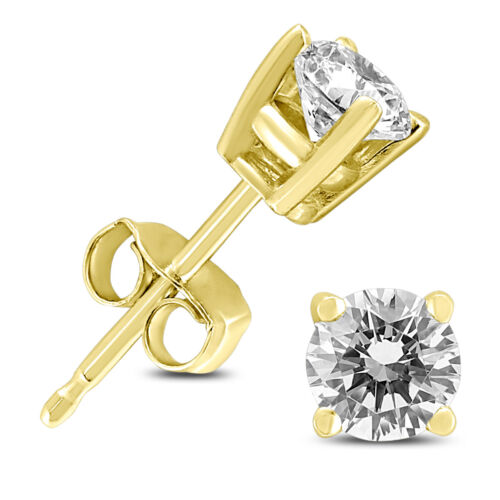 ESTATE .38CT DIAMOND 14KT YELLOW GOLD 3D CLASSIC ROUND FOUR PRONG STUD EARRINGS