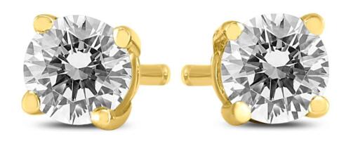 ESTATE 14KT YELLOW GOLD STUD EARRINGS. 3D CLASSIC THREE PRONG DESIGN. ROUND DIAMONDS ARE H/I COLOR, SI CLARITY .38 CARATS. WRITTEN APPRAISAL AVAILABLE. COMES IN A PRESENTABLE GIFT BOX.