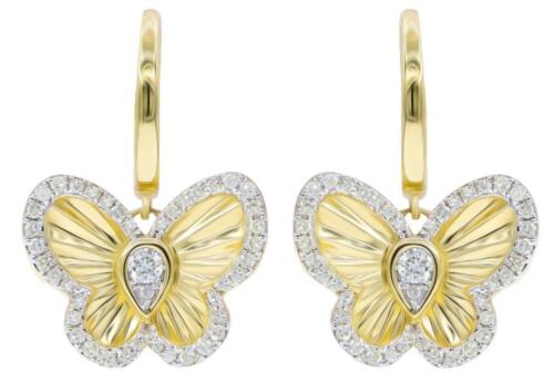 ESTATE .39CT DIAMOND 14KT YELLOW GOLD 3D CLASSIC BUTTERFLY LOVE HANGING EARRINGS