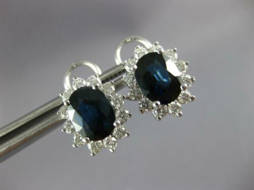ESTATE 14KT WHITE GOLD CLIP ON EARRINGS. 3D FLOWER DESIGN. ROUND DIAMONDS ARE F/G COLOR, VSSI CLARITY 1.05 CARATS. AAA OVAL SAPPHIRES ARE 3.03 CARATS. SAPPHIRES MEASURE 7.8mm X 6.4mm. EARRINGS MEASURE 14mm X 11mm. WRITTEN APPRAISAL AVAILABLE. COMES IN A PRESENTABLE GIFT BOX.