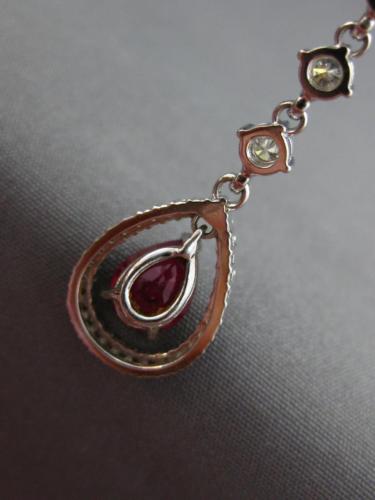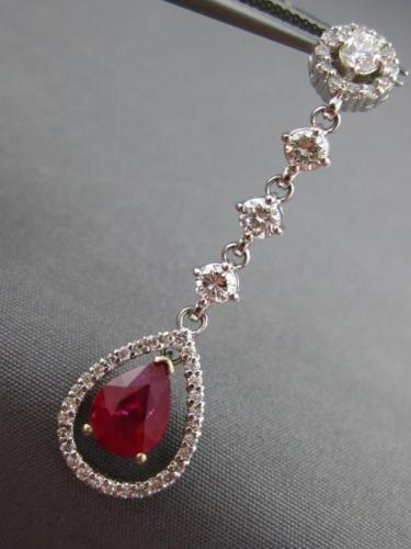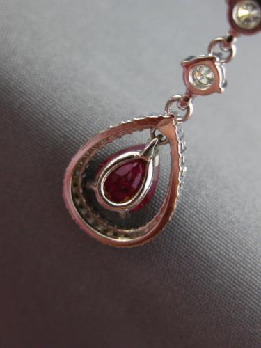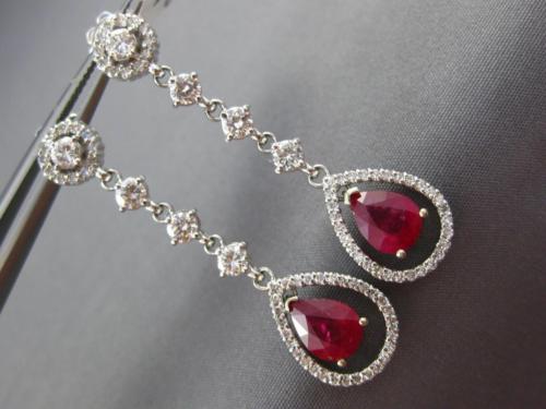 ESTATE 14KT WHITE GOLD CHANDELIER EARRINGS. 3D ETOILE HALO PEAR SHAPE DESIGN. DIAMONDS ARE F/G COLOR, VS/VVS CLARITY 1.66 CARATS. AAA RUBIES ARE 2.64 CARATS. MEASURES 45mm X 11mm. WRITTEN APPRAISAL AVAILABLE. COMES IN A PRESENTABLE GIFT BOX.