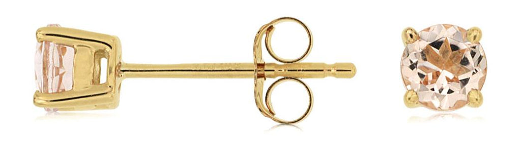 ESTATE 14KT YELLOW GOLD STUD EARRINGS. 3D CLASSIC SOLITAIRE FOOUR PRONG DESIGN. AAA EXTRA FACETED ROUND MORGANITES ARE .40 CARATS. WRITTEN APPRAISAL AVAILABLE. COMES IN A PRESENTABLE GIFT BOX.