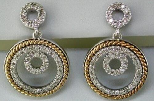 ESTATE .40CT DIAMOND 14K 2 TONE GOLD 3D CIRCLE OF LIFE ROPE FUN HANGING EARRINGS