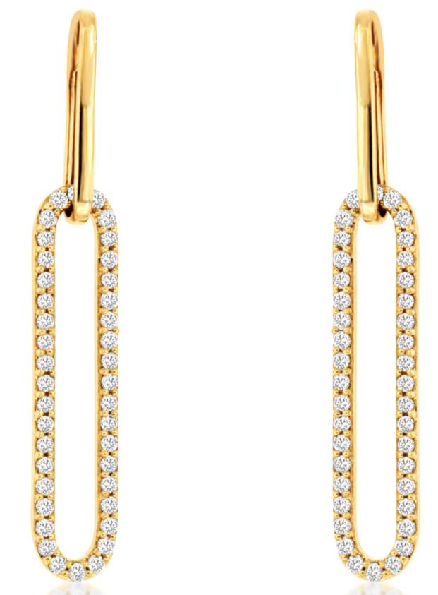 ESTATE 14KT YELLOW GOLD FUN HANGING EARRINGS. 3D OPEN OVAL PAPERCLIP DESIGN. DIAMONDS ARE F/G COLOR, VSSI CLARITY .40 CARATS. WRITTEN APPRAISAL AVAILABLE. COMES IN A PRESENTABLE GIFT BOX.