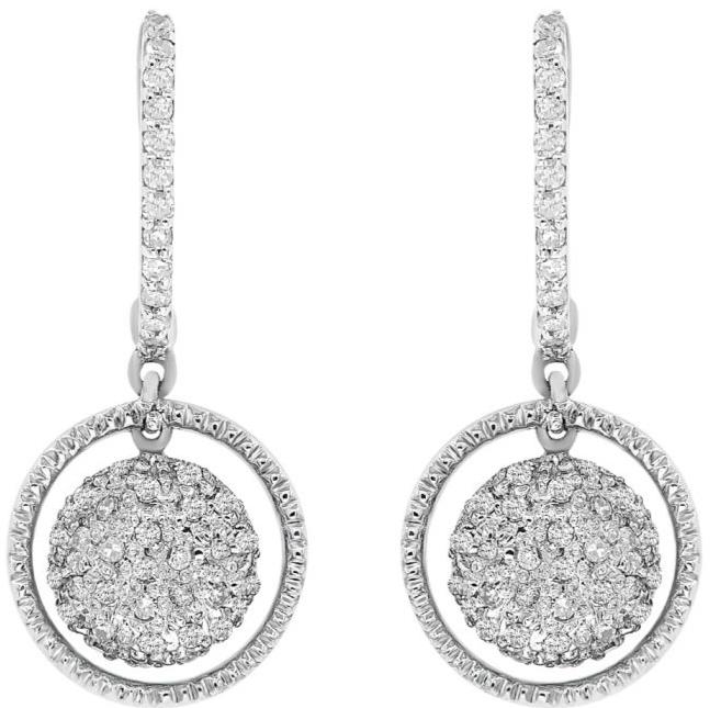 ESTATE 14KT WHITE GOLD HANGING EARRINGS. 3D CLUSTER FLOWER CIRCULAR DESIGN. DIAMONDS ARE F/G COLOR, VSSI CLARITY .40 CARATS. WRITTEN APPRAISAL AVAILABLE. COMES IN A PRESENTABLE GIFT BOX.