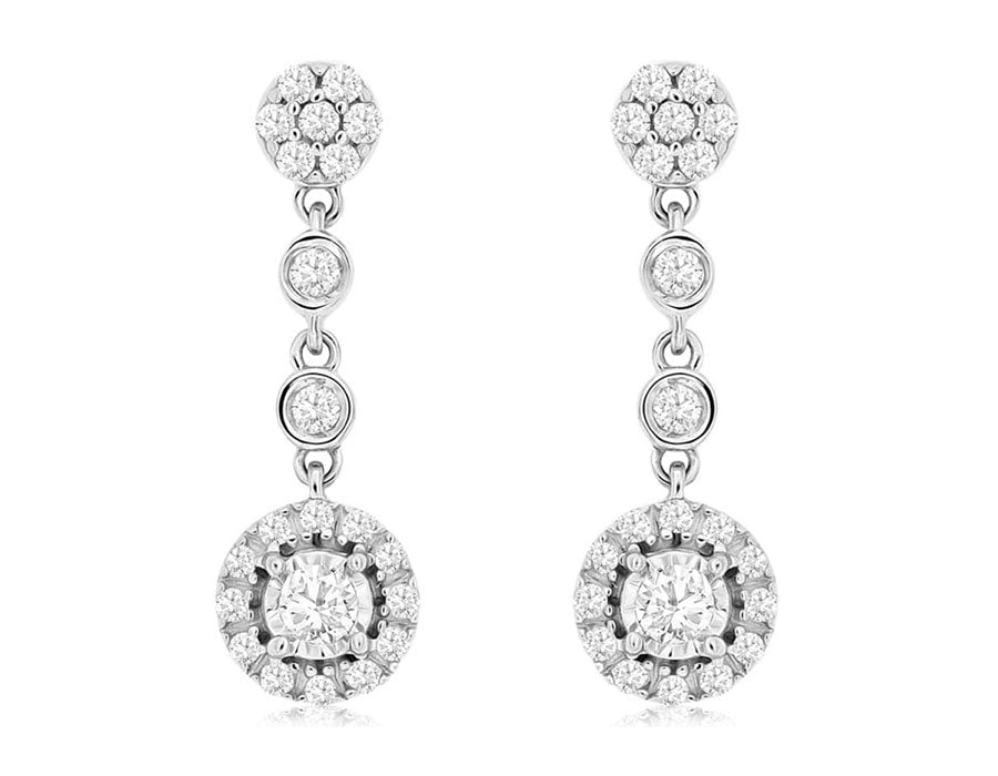 ESTATE 14KT WHITE GOLD FUN HANGING EARRINGS. 3D CLASSIC FLOWER BY THE YARD DESIGN. DIAMONDS ARE F/G COLOR, VSSI CLARITY .40 CARATS. WRITTEN APPRAISAL AVAILABLE. COMES IN A PRESENTABLE GIFT BOX.