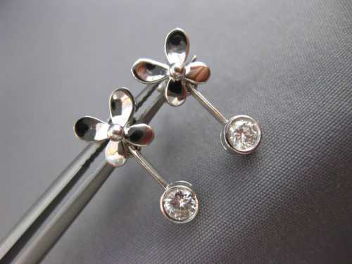 ESTATE .40CT DIAMOND 18KT WHITE GOLD 3D BEZEL BUTTERFLY HANGING EARRINGS #6417