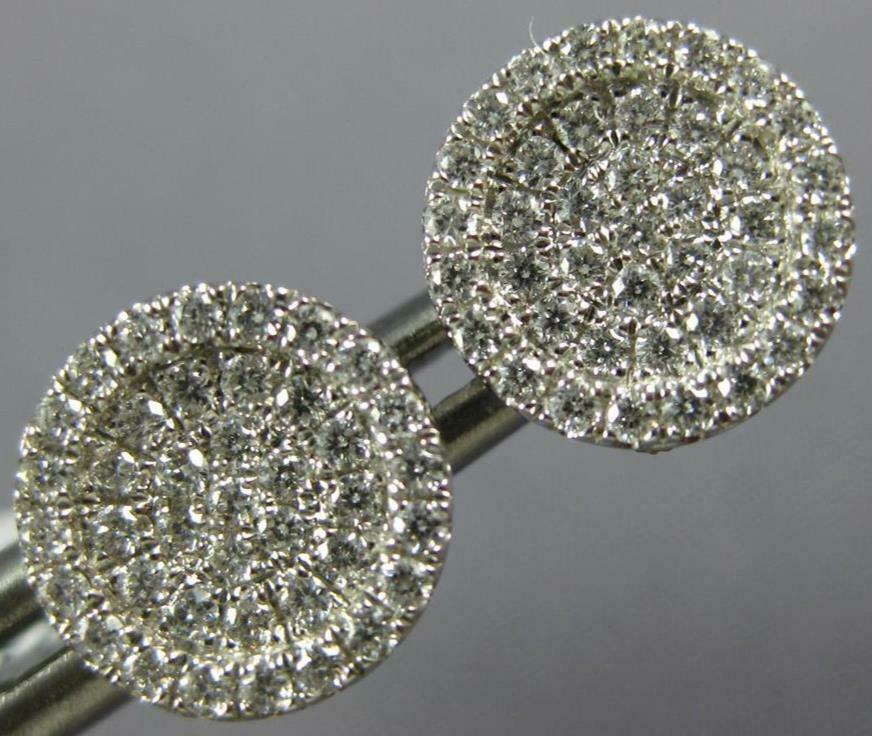 ESTATE18KT WHITEGOLD STUDEARRINGS. 3D CLASSIC CLUSTER PAVE CIRCULARDESIGN. DIAMONDS ARE F/G COLOR, VSSI CLARITY .40CARATS.MEASURES 9mm WIDE. WRITTEN APPRAISAL AVAILABLE. COMES IN A PRESENTABLE GIFT BOX.
