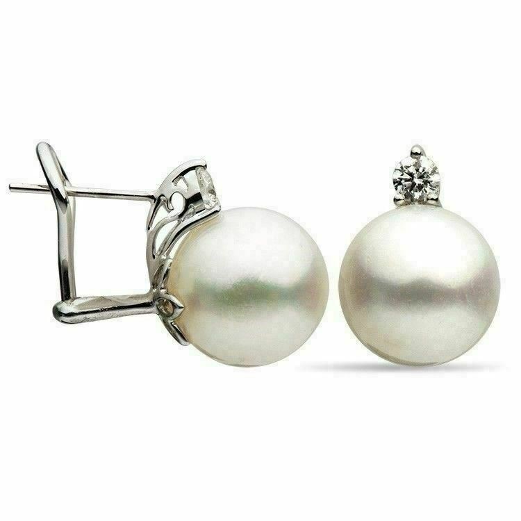 ESTATE 18KT WHITE GOLD CLIP ON EARRINGS. 3D CLASSIC TWO STONE FLOWER OPEN FILIGREE DESIGN. DIAMONDS ARE F/G COLOR, VSSI CLARITY .40 CARATS. AAA SOUTH SEA PEARLS ARE 12-13MM WIDE. WRITTEN APPRAISAL AVAILABLE. COMES IN A PRESENTABLE GIFT BOX
