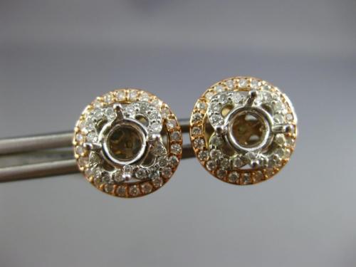 ESTATE .42CT DIAMOND 14K TRI COLOR GOLD HALO FOUR PRONG SEMI MOUNT STUD EARRINGS