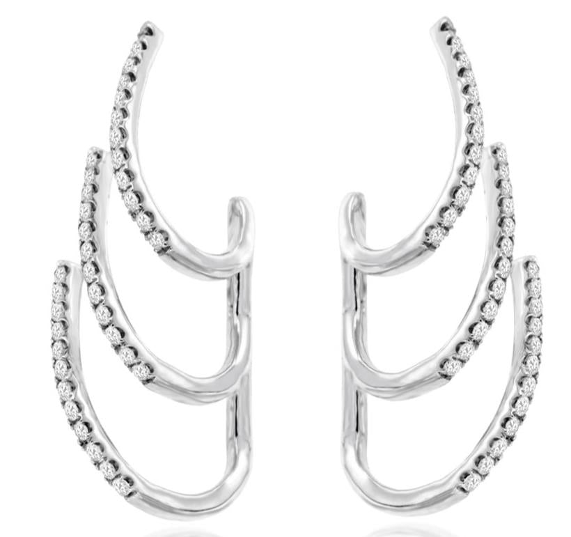 ESTATE 14KT WHITE GOLD FUN EAR CLIMBER HANGING EARRINGS. 3D THREE ROW CLASSIC DESIGN. DIAMONDS ARE F/G COLOR, VSSI CLARITY .42 CARATS. WRITTEN APPRAISAL AVAILABLE. COMES IN A PRESENTABLE GIFT BOX.