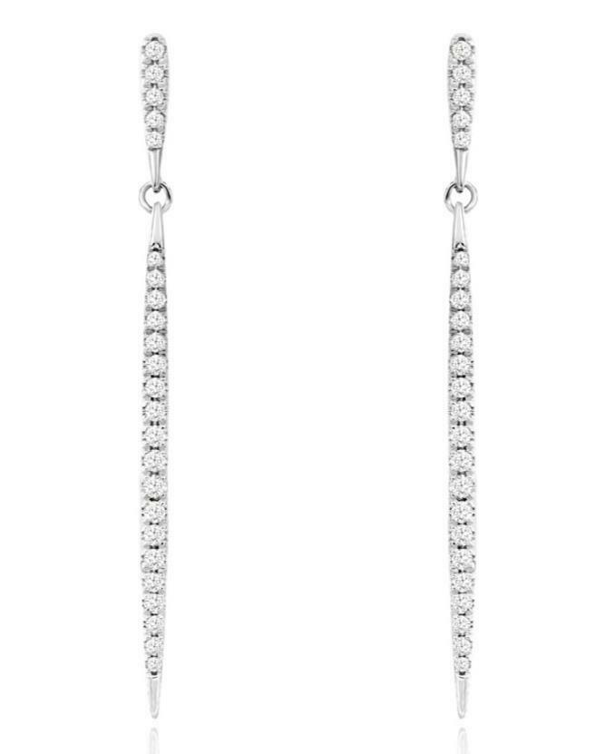 ESTATE 14KT WHITE GOLD FUN HANGING EARRINGS. 3D CLASSIC GRADUATING BAR DESIGN. DIAMONDS ARE F/G COLOR, VSSI CLARITY .42 CARATS. WRITTEN APPRAISAL AVAILABLE. COMES IN A PRESENTABLE GIFT BOX.