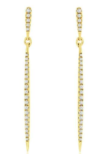 ESTATE 14KT YELLOW GOLD FUN HANGING EARRINGS. 3D GRADUATING BAR DESIGN. DIAMONDS ARE F/G COLOR, VSSI CLARITY .42 CARATS. WRITTEN APPRAISAL AVAILABLE. COMES IN A PRESENTABLE GIFT BOX.