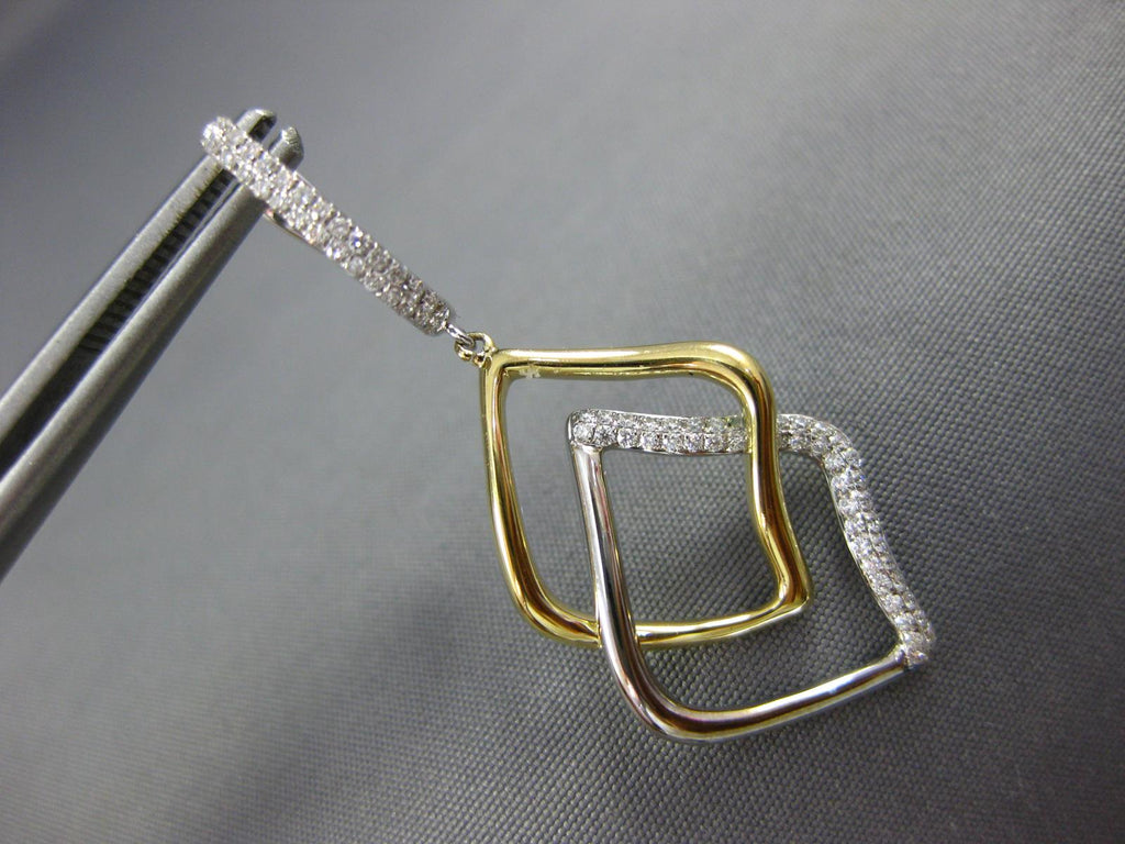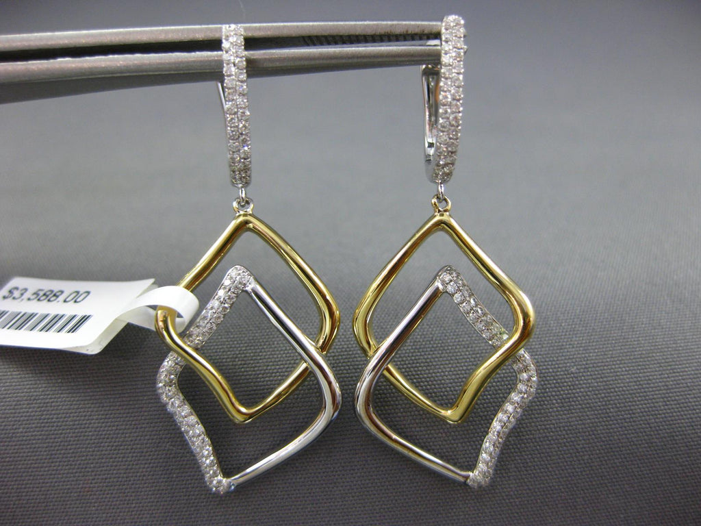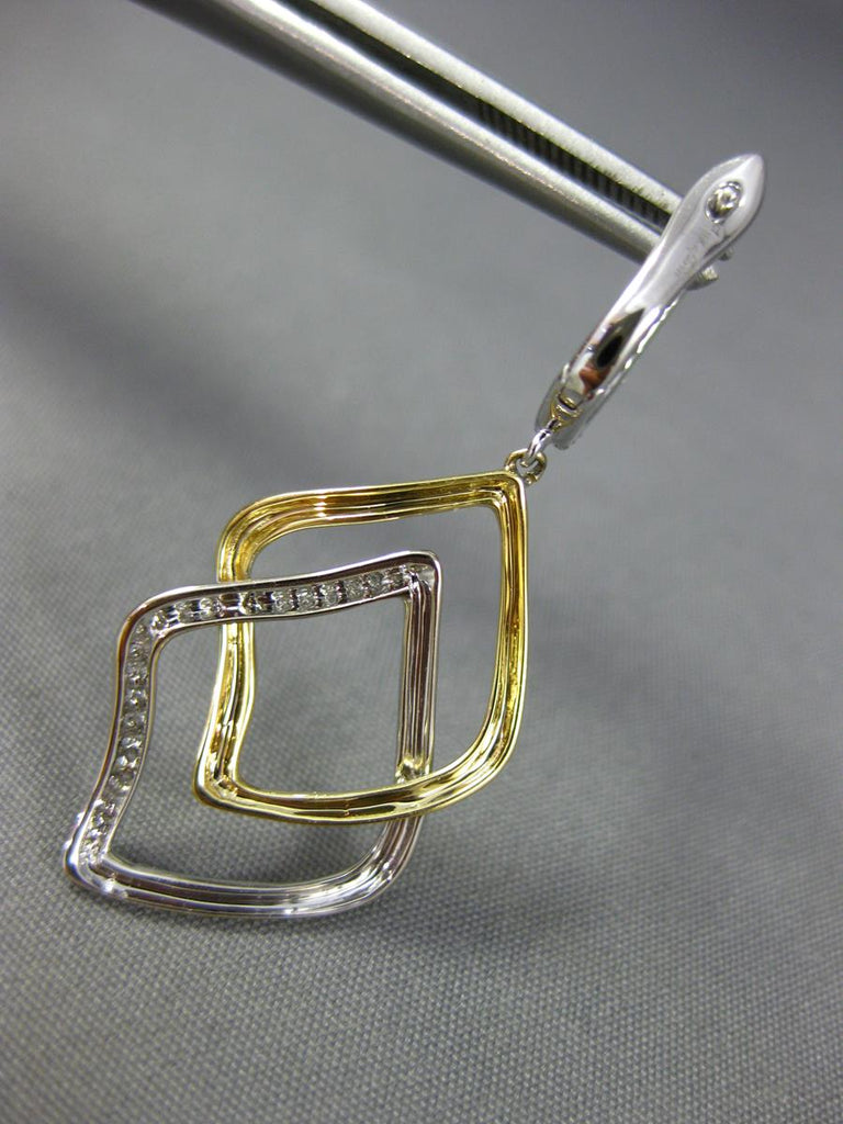 ESTATE 18KT WHITE AND YELLOW GOLD HANGING EARRINGS. 3D DOUBLE LEAF CLASSIC DESIGN. DIAMONDS ARE F/G COLOR, VSSI CLARITY .42 CARATS. MEASURES 39mm X 16mm. WRITTEN APPRAISAL AVAILABLE. COMES IN A PRESENTABLE GIFT BOX.