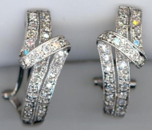 ESTATE .43CT DIAMOND 14K WHITE GOLD 3D DOUBLE SWIRL FUN CLIP ON HANGING EARRINGS