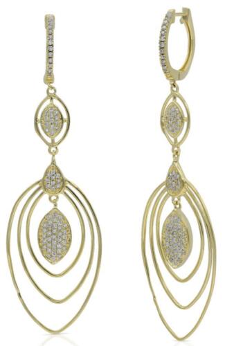 ESTATE 14KT YELLOW GOLD HUGGIE FUN HANGING EARRINGS. 3D MULTI OVAL DESIGN. ROUND DIAMONDS ARE F/G COLOR, VSSI CLARITY .43 CARATS.