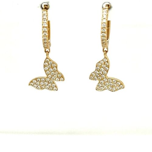 ESTATE .44CT DIAMOND 18KT YELLOW GOLD 3D CLASSIC BUTTERFLY LOVE HANGING EARRINGS