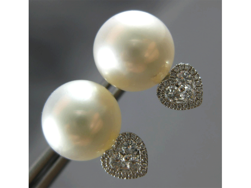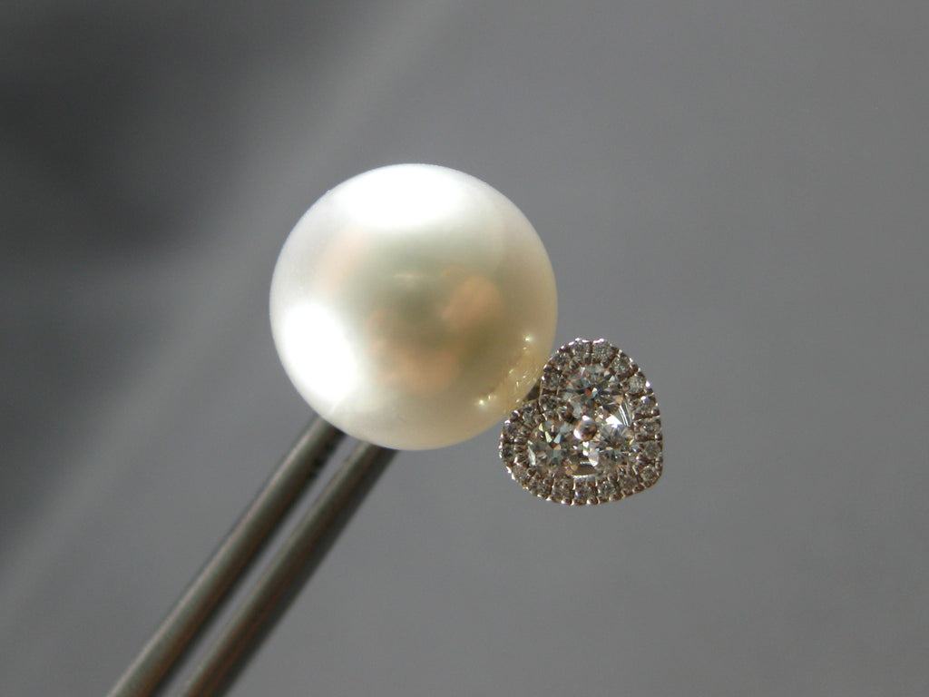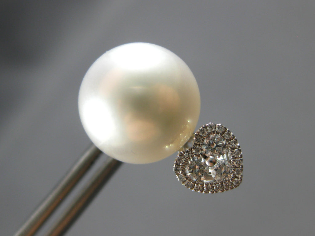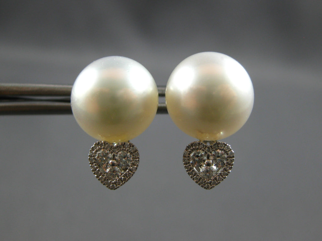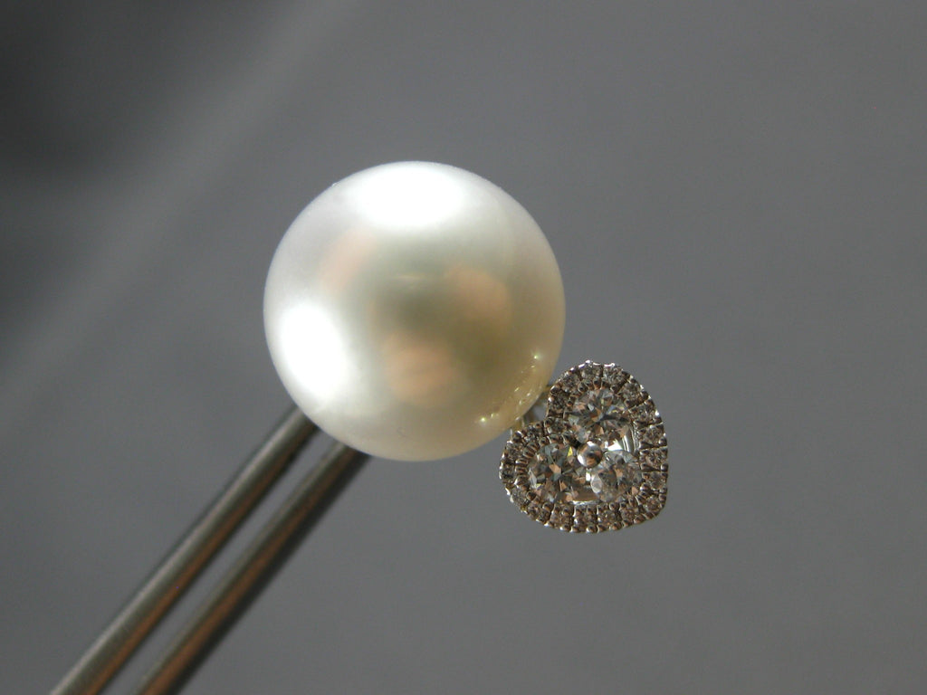 18KT WHITE GOLD HANGING EARRINGS. 3D CLASSIC CHANDELIER DESIGN. DIAMONDS ARE F/G COLOR, VSSI CLARITY .44 CARATS. FEATURES 12MM WIDE AAA SOUTH SEA PEARL. EARRINGS MEASURE 26.6mm X 12MM. WRITTEN APPRAISAL AVAILABLE. COMES IN A PRESENTABLE GIFT BOX.