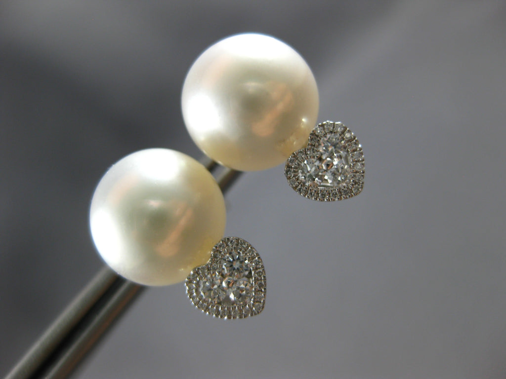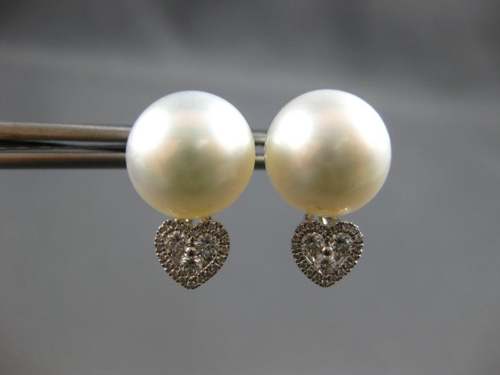 ESTATE .44CT DIAMOND & AAA TAHITIAN PEARL 18K WHITE GOLD 3D FUN HANGING EARRINGS