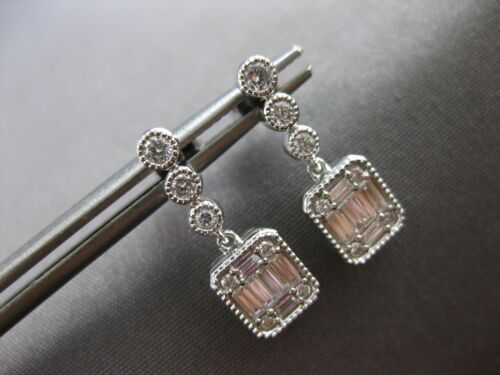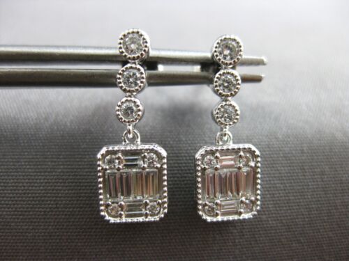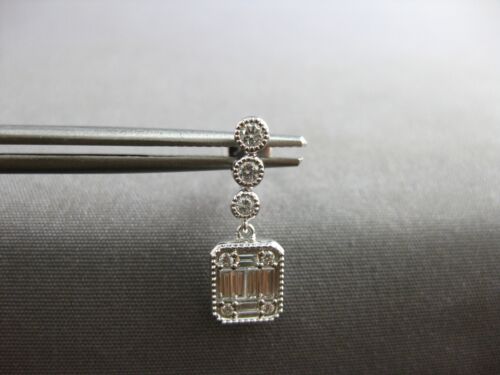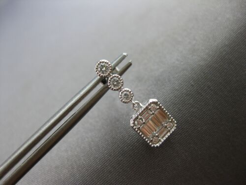 ESTATE .45CT DIAMOND 14KT WHITE GOLD ROUND & BAGUETTE INVISIBLE HANGING EARRINGS