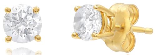 ESTATE .45CT DIAMOND 14KT YELLOW GOLD 3D CLASSIC SOLITAIRE 4 PRONG STUD EARRINGS