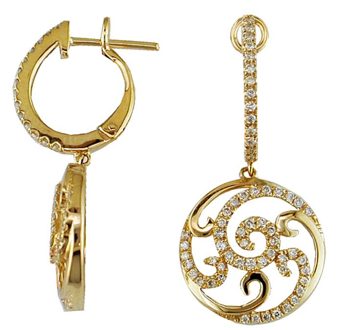 ESTATE .45CT DIAMOND 14KT YELLOW GOLD CIRCULAR OPEN FILIGREE FUN HANGING EARRING