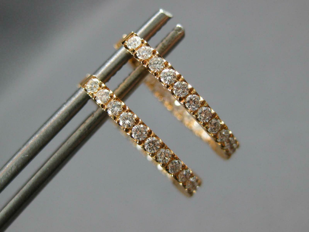 ESTATE 18KT ROSE GOLD HUGGIE HANGING EARRINGS. 3D CLASSIC OVAL INSIDE OUT DESIGN. ROUND DIAMONDS ARE F/G COLOR, VVS-VS CLARITY .46 CARATS. MEASURES 15MM X 2MM. WRITTEN APPRAISAL AVAILABLE. COMES IN A PRESENTABLE GIFT BOX.