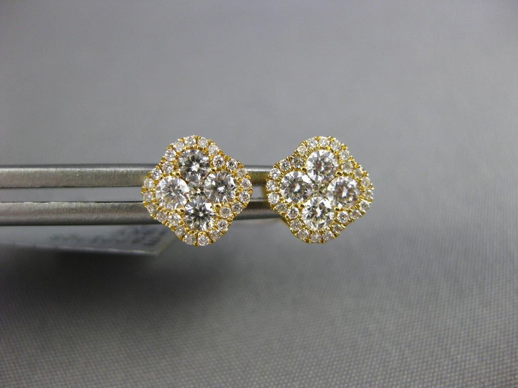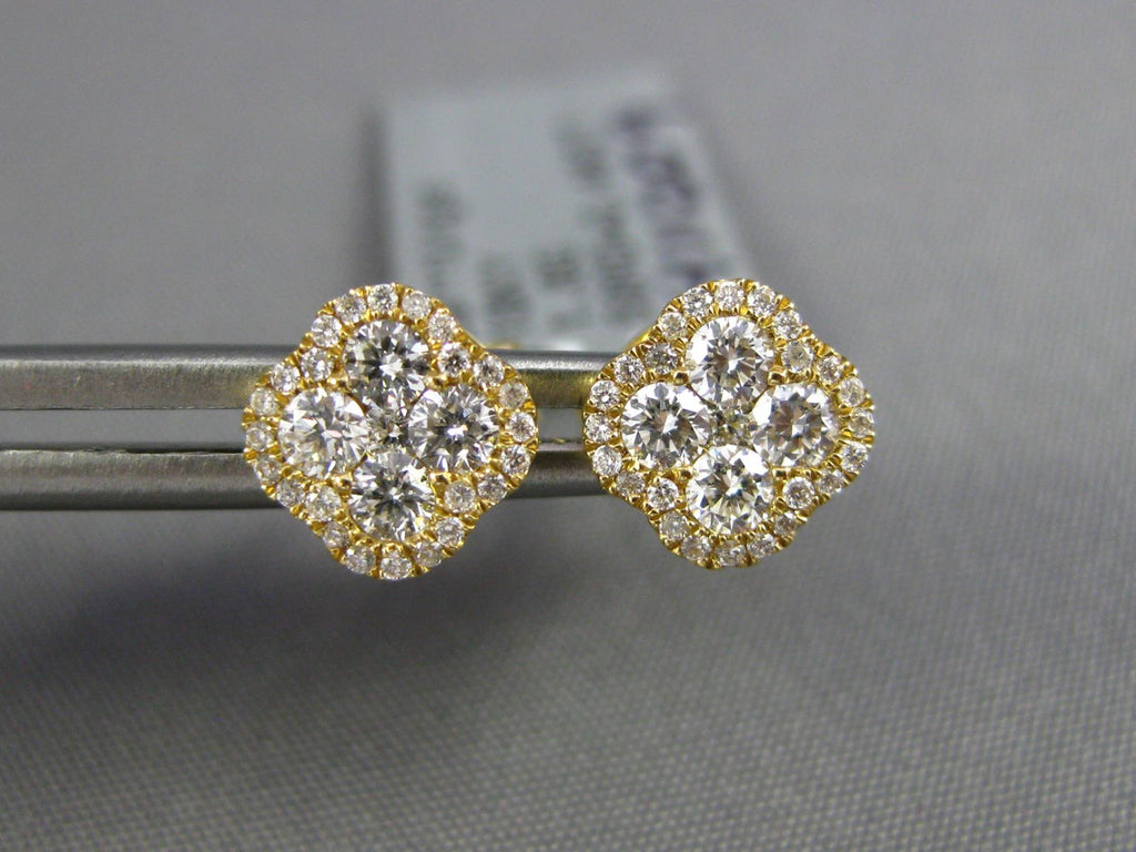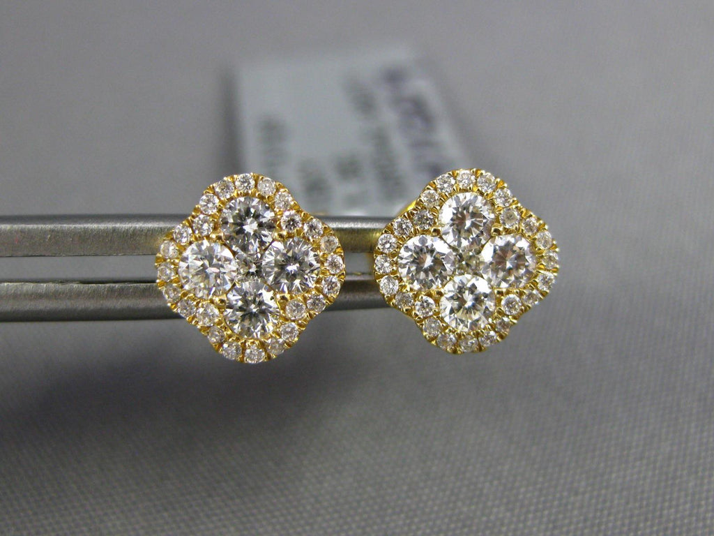 ESTATE .46CT DIAMOND 18KT YELLOW GOLD 4 LEAF CLOVER SQUARE FLOWER STUD EARRINGS