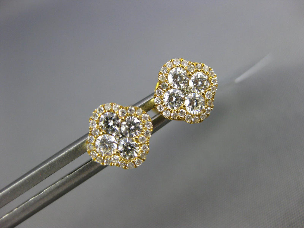 ESTATE 18KT YELLOW GOLD STUD EARRINGS. 3D FOUR LEAF CLOVER SQUARE FLOWER DESIGN. DIAMONDS ARE F/G COLOR, VSSI CLARITY .46 CARATS. MEASURES 8MM. WRITTEN APPRAISAL AVAILABLE. COMES IN A PRESENTABLE GIFT BOX.