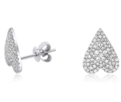 ESTATE 14KT WHITE GOLD LOVE STUD EARRINGS. 3D CLASSIC PAVE HEART DESIGN. DIAMONDS ARE F/G COLOR, VSSI CLARITY .47 CARATS. WRITTEN APPRAISAL AVAILABLE. COMES IN A PRESENTABLE GIFT BOX.