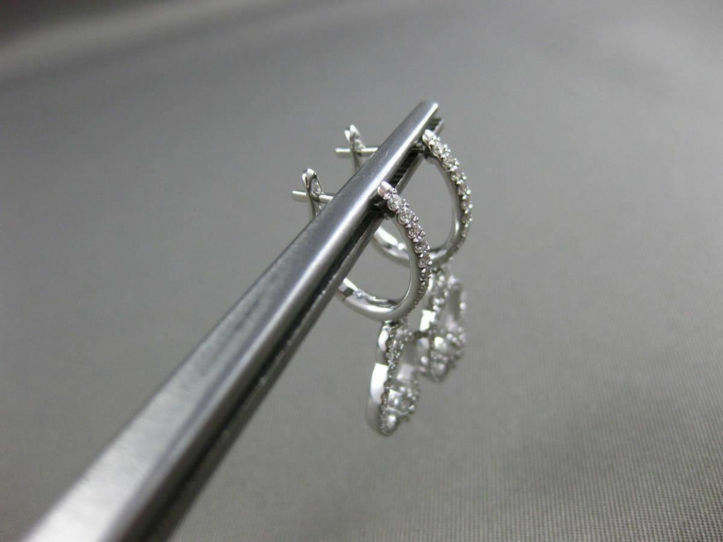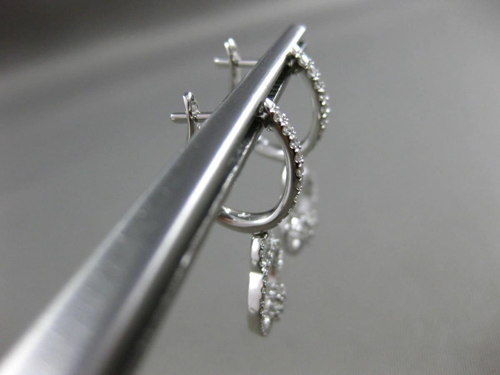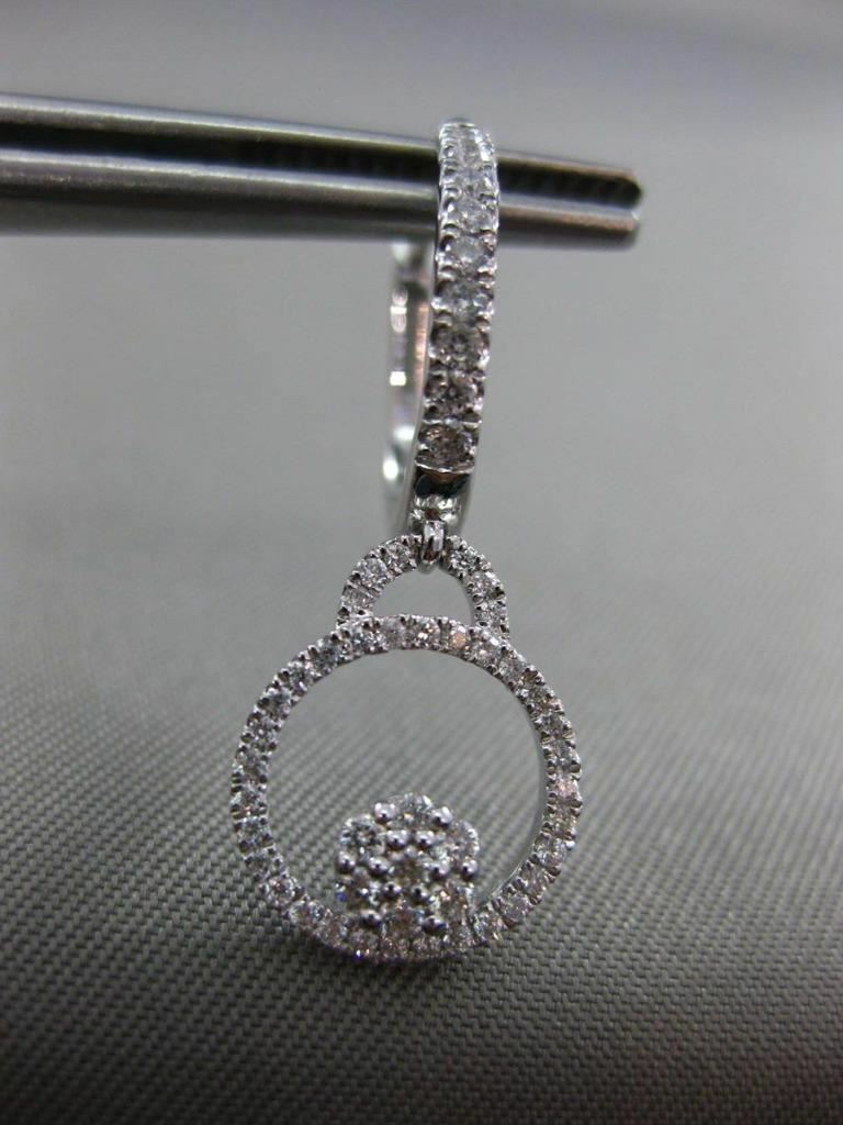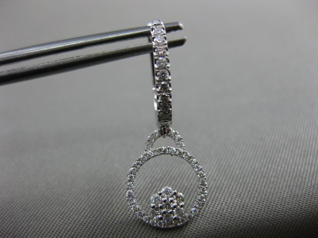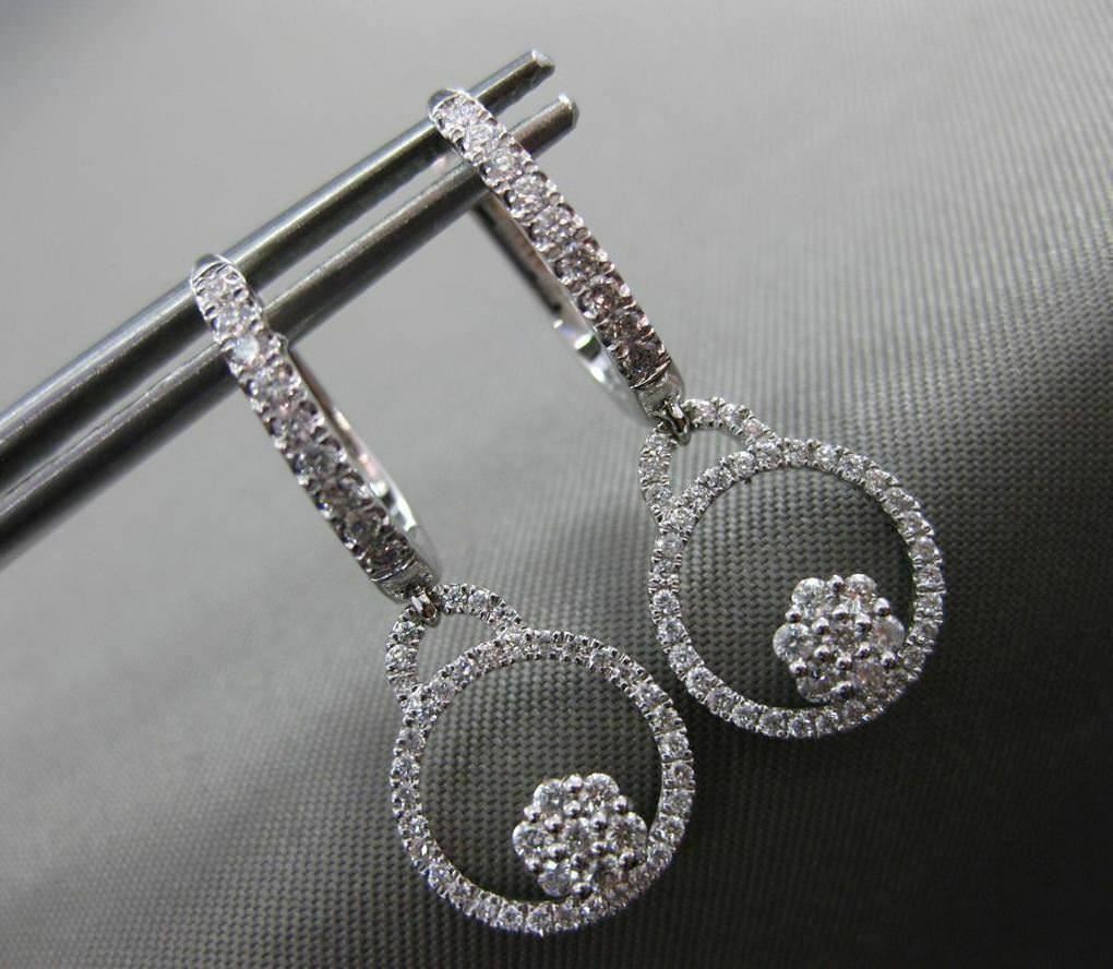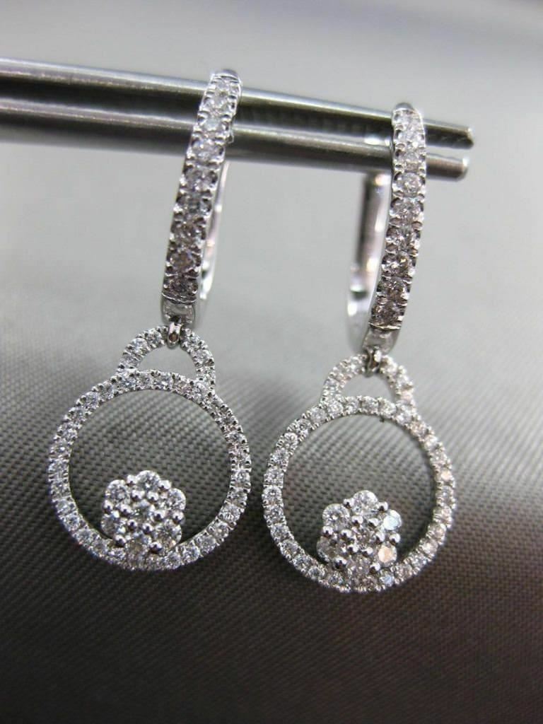 ESTATE WIDE 18KT WHITE GOLD HUGGIE HANGING EARRINGS. 3D FLOWER CIRCLE OF LIFE DESIGN. DIAMONDS ARE F/G COLOR, VVS/VS CLARITY .47 CARATS. MEASURES 26mm X 10mm WIDE. WRITTEN APPRAISAL AVAILABLE. COMES IN A PRESENTABLE GIFT BOX