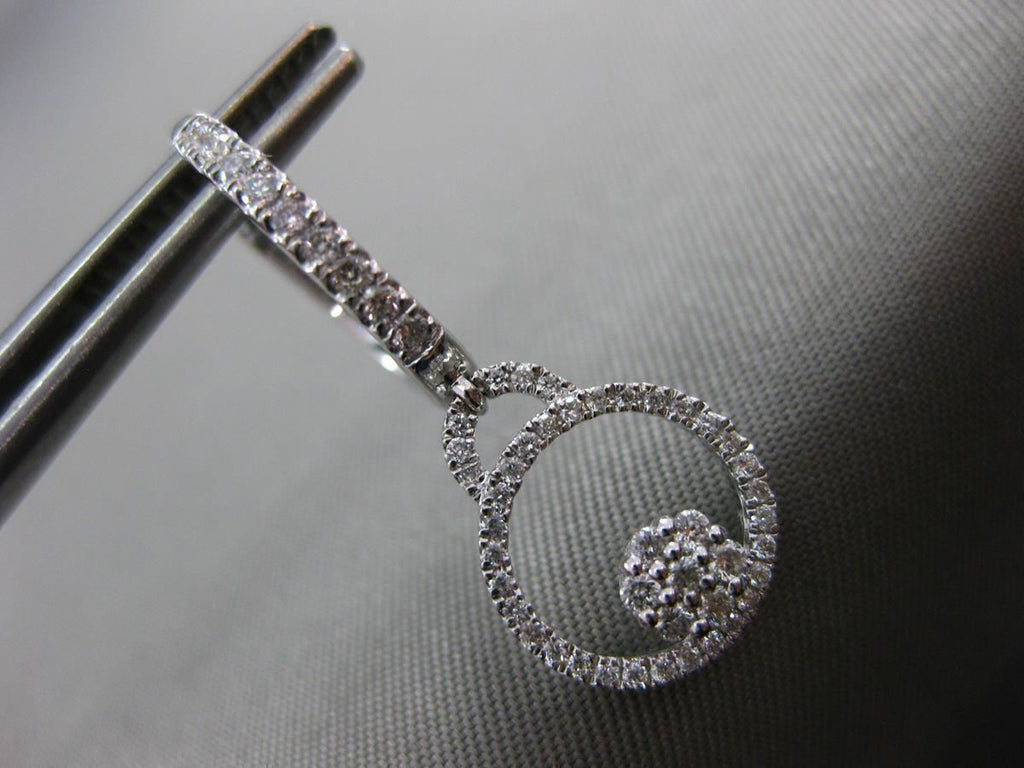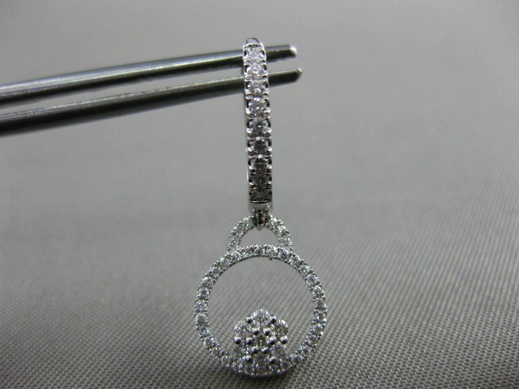 ESTATE .47CT DIAMOND 18K WHITE GOLD 3D FLOWER CIRCLE OF LIFE HUGGIE EARRINGS VVS