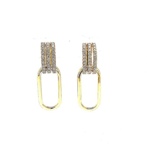 ESTATE .47CT DIAMOND 18K YELLOW GOLD 3D THREE ROW OPEN OVAL FUN HANGING EARRINGS