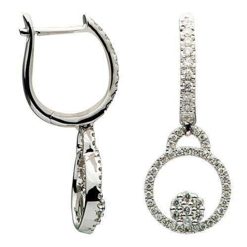 ESTATE 18KT WHITE GOLD HANGING EARRINGS. 3D CLASSIC CIRCLE OF LIFE DESIGN. DIAMONDS ARE F/G COLOR, VSSI CLARITY .47 CARATS. WRITTEN APPRAISAL AVAILABLE. COMES IN A PRESENTABLE GIFT BOX.