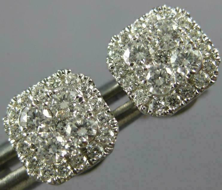 ESTATE18KT WHITEGOLD STUDEARRINGS. 3D CLUSTER FLOWER SQUARE OCTAGONDESIGN. DIAMONDS ARE F/G COLOR, VSSI CLARITY .47CARATS.MEASURES 7mm WIDE. WRITTEN APPRAISAL AVAILABLE. COMES IN A PRESENTABLE GIFT BOX.