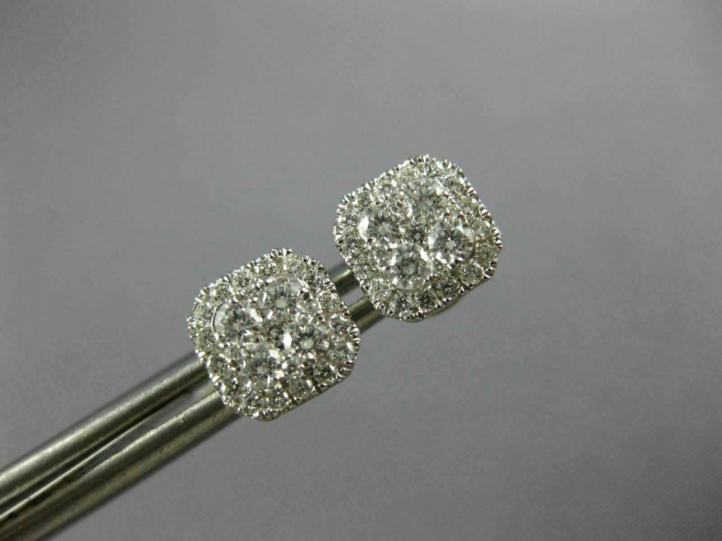 ESTATE .47CT DIAMOND 18KT WHITE GOLD CLUSTER FLOWER SQUARE OCTAGON STUD EARRINGS