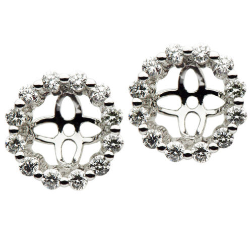 ESTATE 18KT WHITE GOLD JACKET EARRINGS. 3D ROUND SHARE PRONG CLASSIC DESIGN. DIAMONDS ARE F/G COLOR, VSSI CLARITY .47 CARATS. WRITTEN APPRAISAL AVAILABLE. COMES IN A PRESENTABLE GIFT BOX.