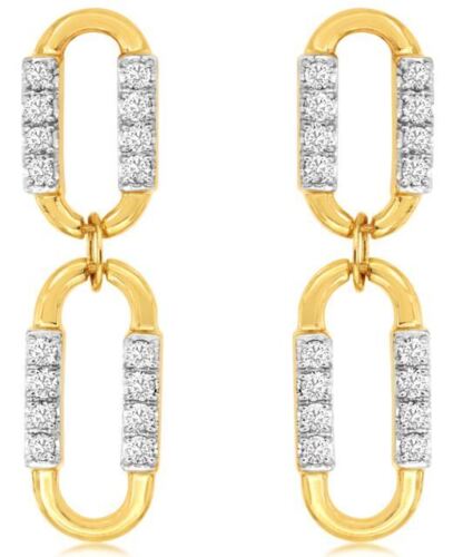 ESTATE 14KT WHITE AND YELLOW GOLD FUN HANGING EARRINGS. 3D DOUBLE OVAL PAPERCLIP LINK DESIGN. DIAMONDS ARE F/G COLOR, VSSI CLARITY .48 CARATS. WRITTEN APPRAISAL AVAILABLE. COMES IN A PRESENTABLE GIFT BOX.