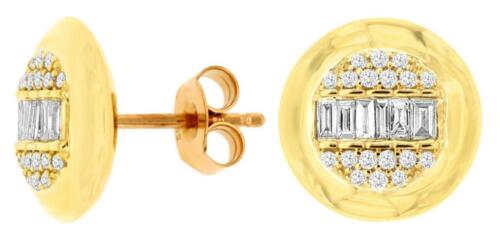 ESTATE .48CT DIAMOND 14K YELLOW GOLD ROUND & BAGUETTE CIRCULAR FUN STUD EARRINGS